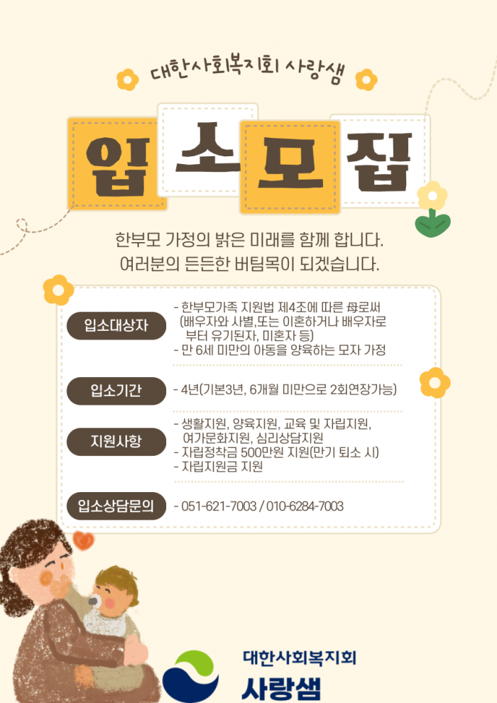사랑샘 입소모집 안내
