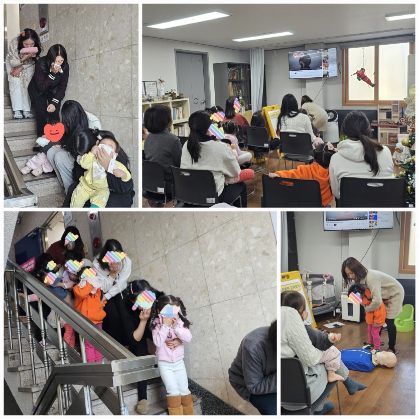 12/23 사랑샘 직원들과 생활자 모두 모여 응급상황과 안전사고에 대한 대처교육을 받고 모의훈련을 해보는 시간을 가졌습니다. 위기 상황에서 현명하게 잘 대처하여 안전하게 대응할 수 있기를 바랍니다~