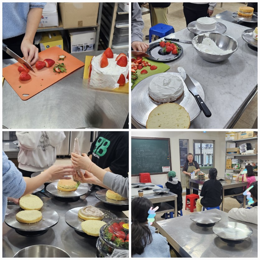 12/21 크리스마스를 맞이하여 사랑샘 엄마들과 함께 케익을 만들어보는 시간을 가졌습니다. 맛있는 딸기와 우유크림을 이용해 각자의 개성이 넘치게 만든 케익 모두 너무 예쁘지 않나요?