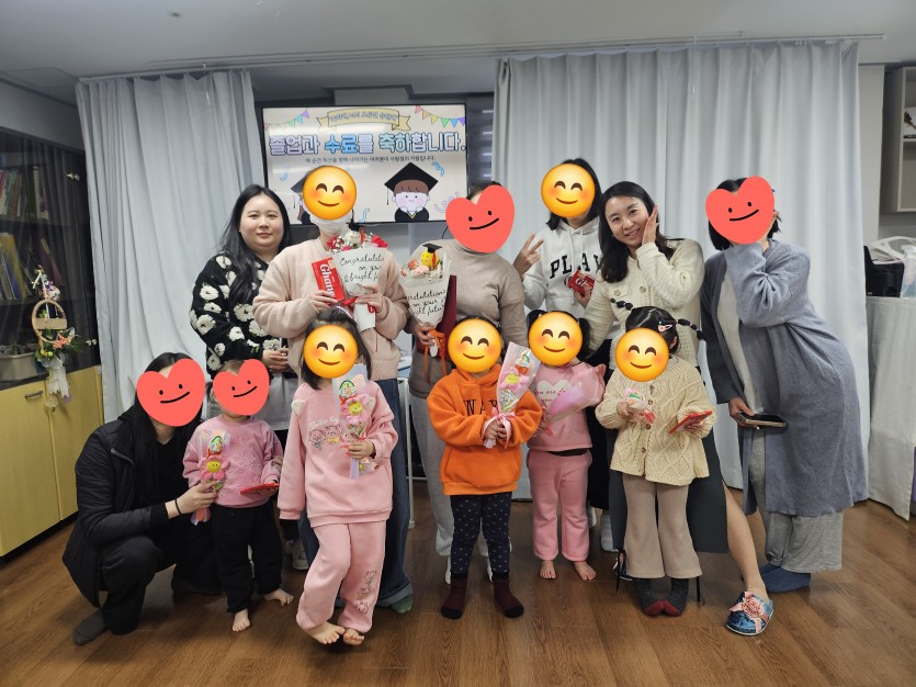 졸업을 축하해! 새로운 출발을 응원해!사랑샘 엄마 2명이 대학을 졸업했습니다.목표를 이루기 위해 부단히 노력한 엄마들의 앞날을 응원합니다^^사랑샘의 소중한 보물 아이들도 어린이집 졸업과 수료를 했습니다.사랑샘 막내는 3월에 어린이집에 입학한답니다.매일 웃음과 기쁨을 주는 우리 아이들이 새로운 변화에 잘 적응할 수 있도록 많은 응원 부탁드립니다^^