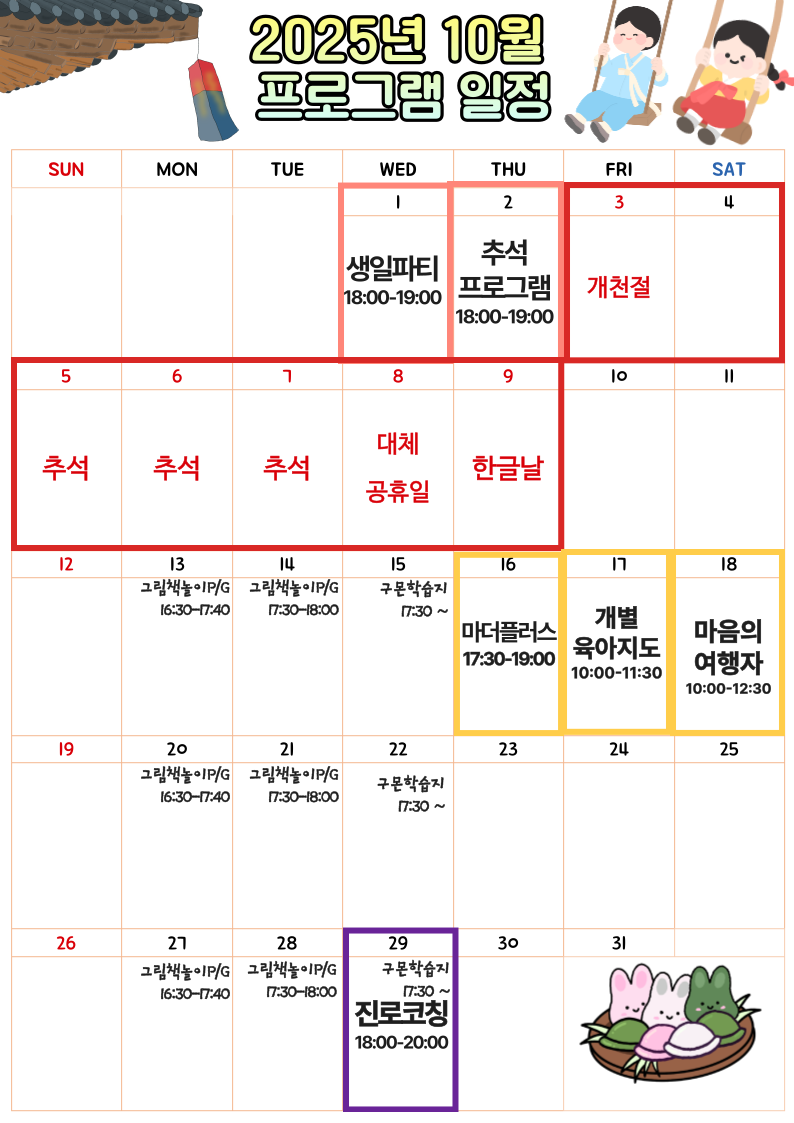 2025년 사랑샘 10월 프로그램 일정공지