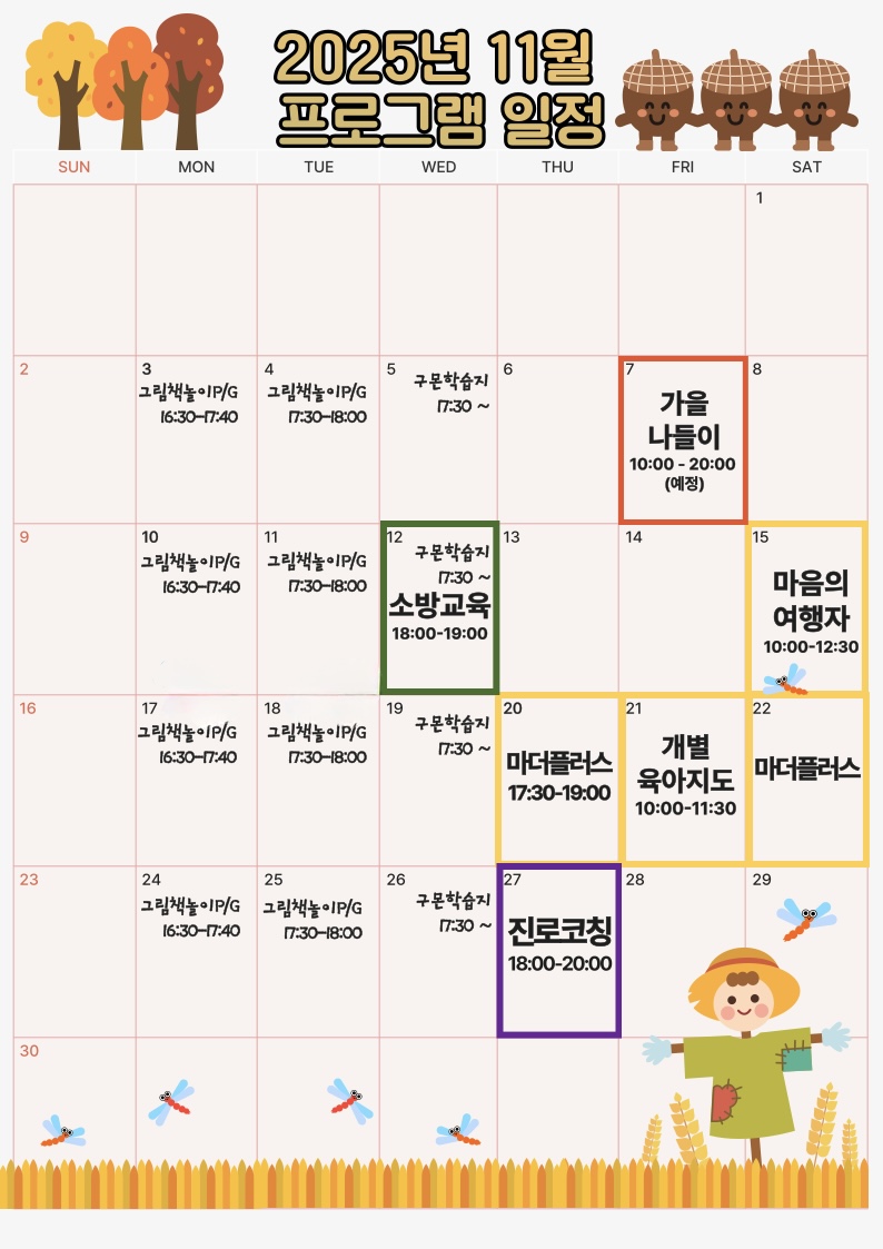 2025년 사랑샘 11월 프로그램 공지
