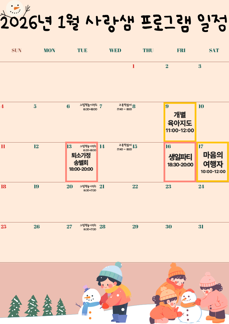 2026년 사랑샘 1월 프로그램 일정 공지