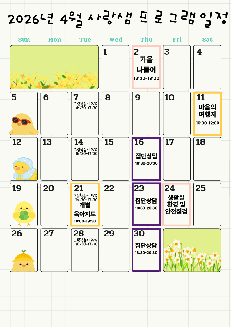 2026년 사랑샘 4월 프로그램 일정 공지